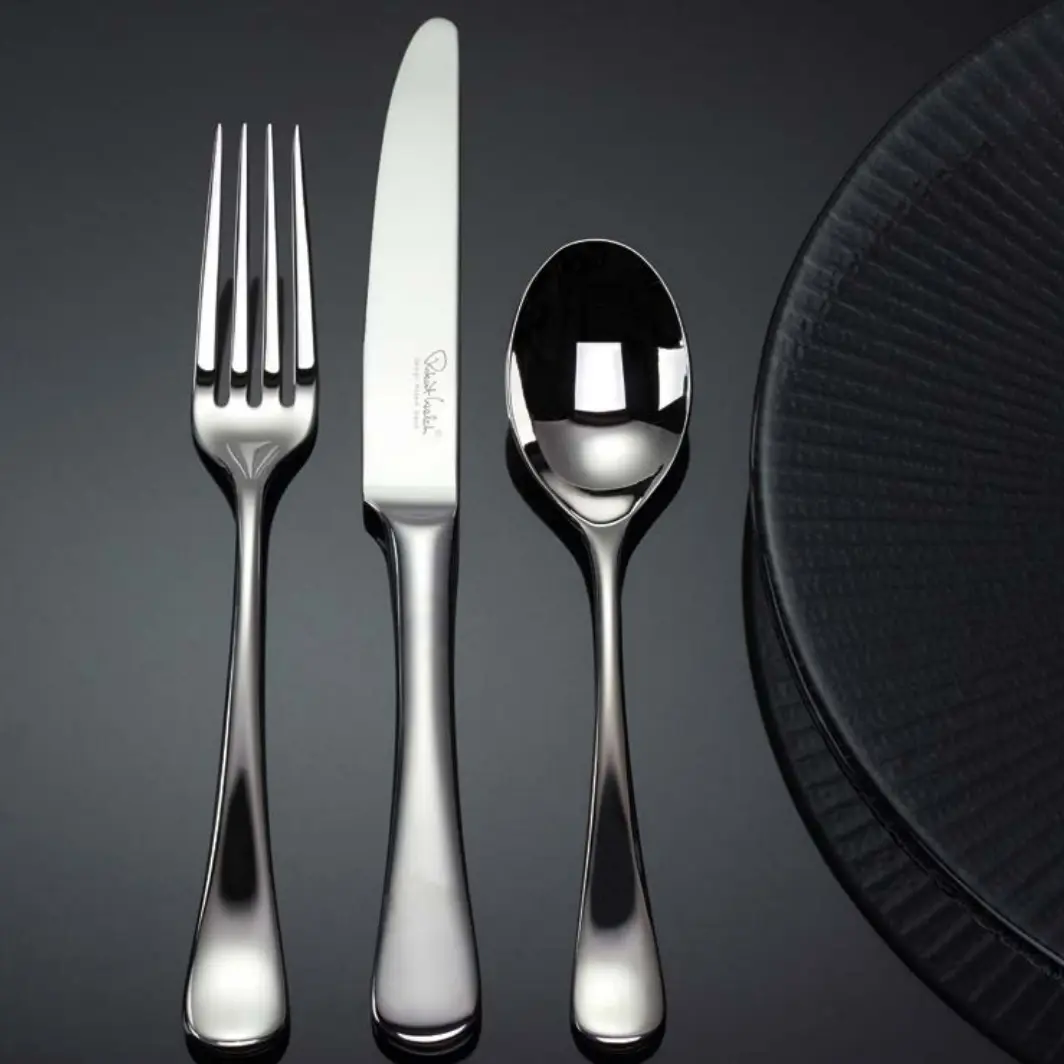 Unter der Rubrik „Besteck“ finden Sie Menümesser, Menügabeln und Menülöffel unterschiedlicher Hersteller. So bieten wir Ihnen sowohl Besteck aus Edelstahl 18/10 bzw. Edelstahl 18/8, als auch Besteck aus Chromstahl an. Des Weiteren führen wir eine große Auswahl an Kaffeelöffeln, Espressolöffeln und Kuchengabeln. Natürlich ist auch an die Kleinsten gedacht – mit Kinderbesteck speziell für Kleinkinder oder Dessertbesteck für Schulkinder.