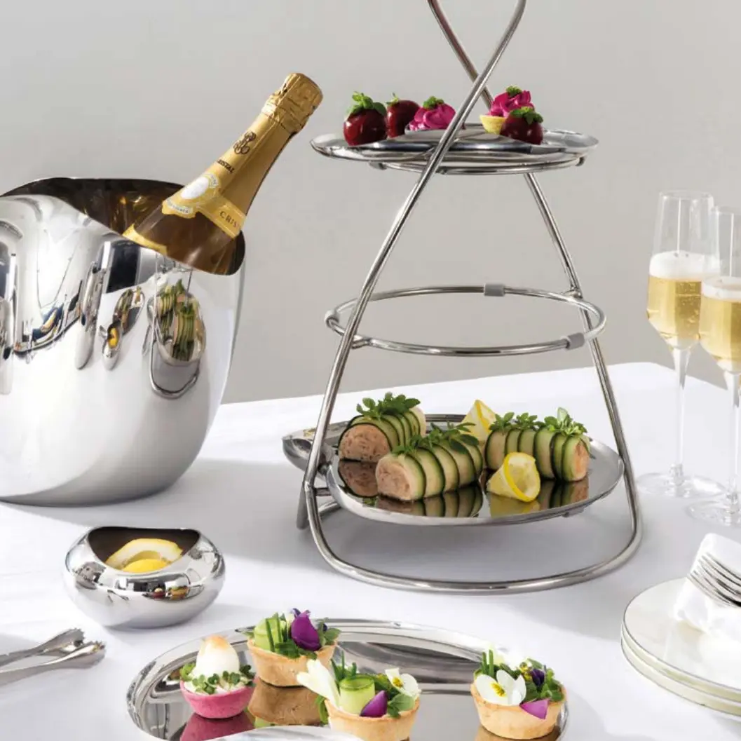 Um Ihre Speisen im Buffet-Bereich ansprechend zu präsentieren, können Sie einerseits auf Porzellan-Platten oder Melamin-Platten zurückgreifen. Alternativ sorgen Auslage-Platten und Tabletts im Schiefer-Look für Abwechslung. Damit Ihr Buffet im Hotel oder Restaurant immer übersichtlich und ordentlich aussieht, haben die Hersteller Assheuer & Pott und Frilich spezielle Präsentationsmöbel entwickelt. Stapelboxen in unterschiedlichen Ausführungen kombiniert mit Getränkespendern und Müsliflöten halten Ihr Buffet jederzeit sauber und ordentlich.